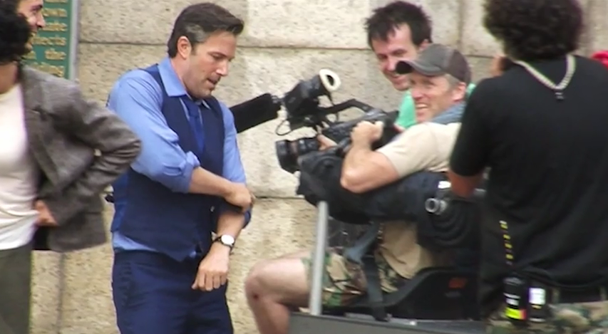 En primer lugar tenemos varias fotos que nos muestran a Ben Affleck en el set de grabaciones todo ello en lo que parece ser una escena de persecución en autos anteriormente solo habíamos visto las escenas de acción con su doble, pero ahora hemos podido ver a Affleck en persona y tal parece que pronto empezaremos a ver a mas actores rodando en exteriores.